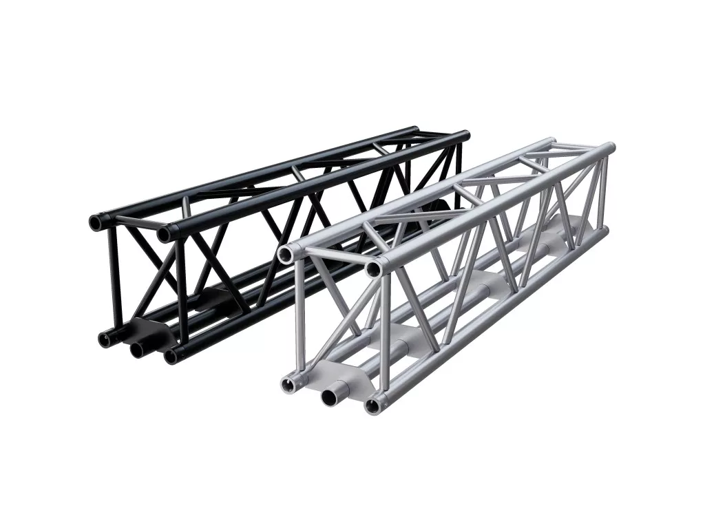 Rectangular truss. 520x762mm. Main tube 50x4mm. Secondary tube 38x3mm. Length 1/2/3 m. Silver or black. FK SERIES