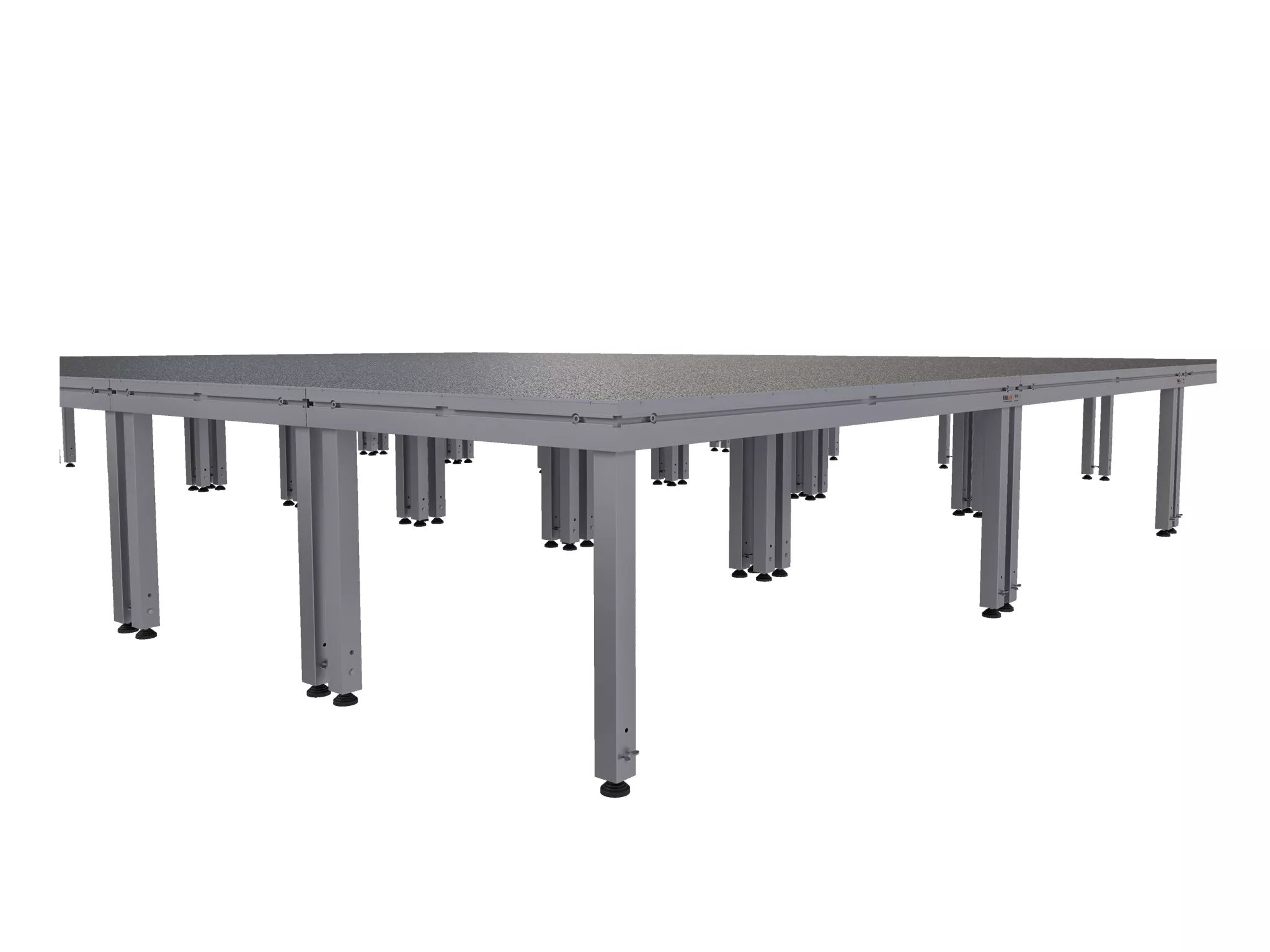 Stage deck with great versatility and the highest success guarantee. Birch plywood 21 mm with WISA® weather-resistant phenolic gluing according to EN-314-2/class 3. Maximum load: 750 Kg/m². Profiles in silver colour. Available in 2x1, 1x1, 2x0.5 and 1x0.5 metres. (FEET NOT INCLUDED. SOLD SEPARATELY)